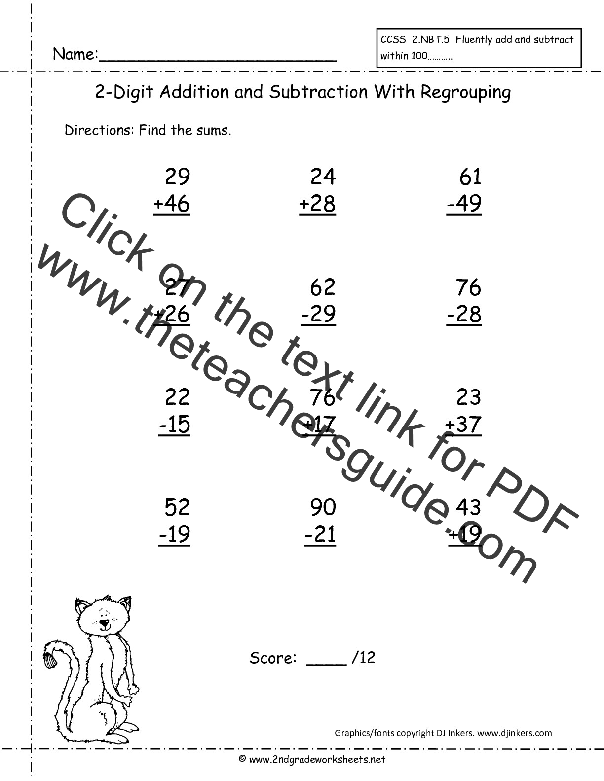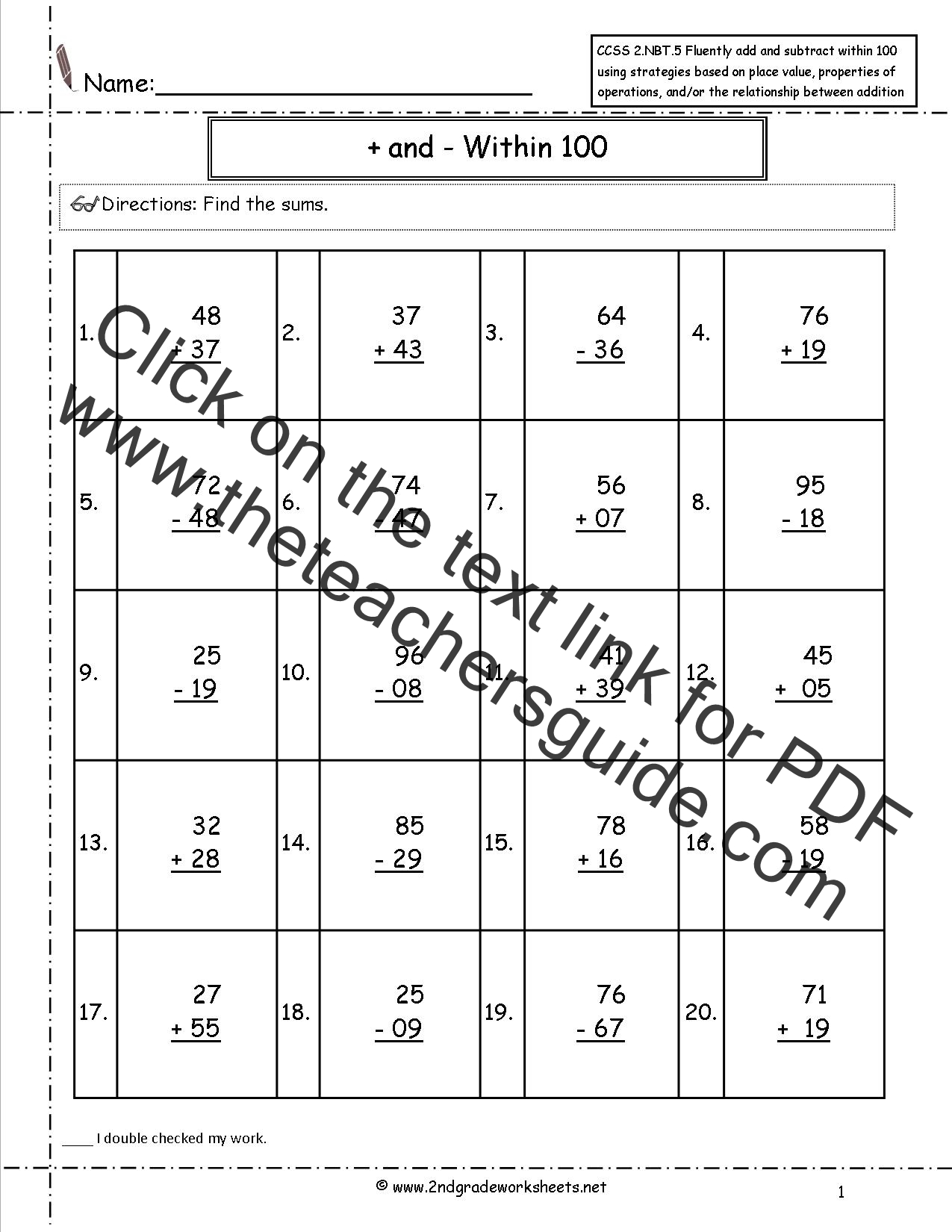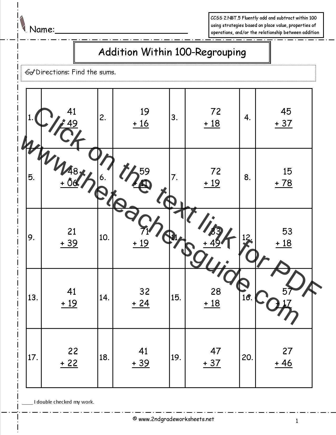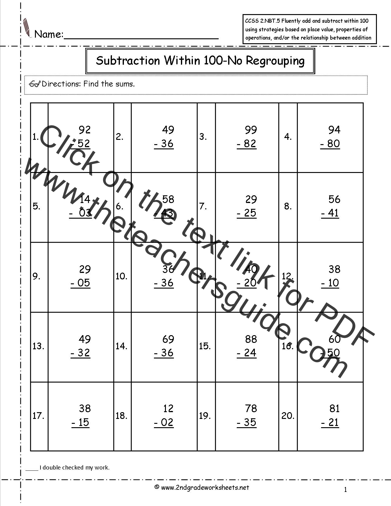 without regrouping. 20 problems.